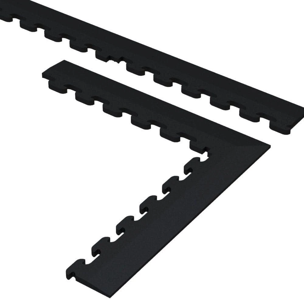 The Norsk NSTKBLK Flooring Trim Kit for PVC tiles finishes your flooring project and is compatible with all Norsk interlocking PVC flooring products. The beveled edge, especially designed with a descending profile to avoid tripping or falling, creates a transition from the PVC floor to your garage or cement flooring and forms a border around the entire perimeter for a finished look. All borders assemble easily like other flooring options including, puzzle mats, foam tiles, garage tiles and foam play mats.