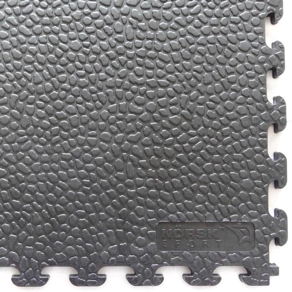The Norsk NSMPRT6DG Interlocking PVC Floor Tiles are flexible, unlike other stiff plastic like flooring options. The Rhino-Tec Sport mats include a durable anti-slip texture. PVC floors are resistant to most chemicals and solvents and provide excellent acoustic and thermal insulation. Our patented Air-Dry design technology allows air to flow under the tile, letting moisture evaporate easily. These PVC tiles assemble easily like other flooring options including, puzzle mats, interlocking . The Norsk PVC tiles provide the support needed to reduce fatigue associated with prolonged standing. This set comes in a Dove Gray finish and includes (6) interlocking PVC tiles.